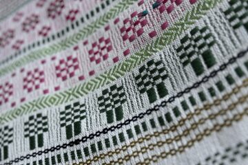 (więcej…)Autor: Katarzyna Daniewicz, przędza – len, wymiary 60 x 150cm,technika: tkanina wielonicielnicowa. Radziuszka, znana także jako radziużka, tkanina przetykana, dwuwątkowa, dziaruga, gunia. Choć najpopularniejsza jej nazwa to tkanina wileńska. Była to bardzo popularna tkanina wśród ludności wiejskiej Wileńszczyzny, Nowogródzkiego i Grodzieńszczyzny. Spotkaliśmy się z interpretacją iż wykonywana była z najgorszego Dowiedz się więcej