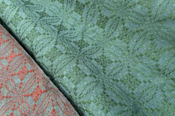 Katarzyna Daniewicz – Puls tradycji, autorkaprzędza: osnowa – len,wiskoza / len,wymiary: 60 x 170cm,technika: tkanina wielonicielnicowa na 4 nicielnice, radziuszka tkanina dekoracyjna