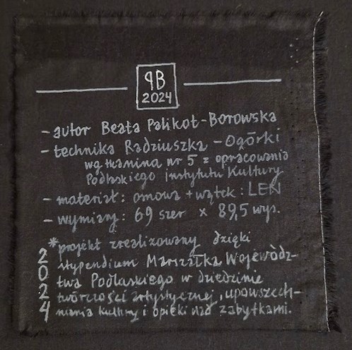 Zrealizowane w ramach Rocznego Stypendium Marszałka Województwa Podlaskiego w dziedzinie twórczości artystycznej, upowszechniania kultury i opieki nad zabytkami na rok 2024