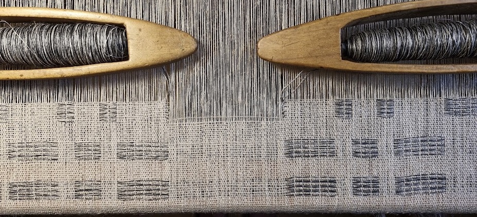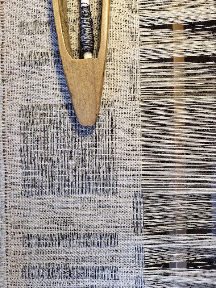 materiał: osnowa len niebarwiony, wątek len barwiony