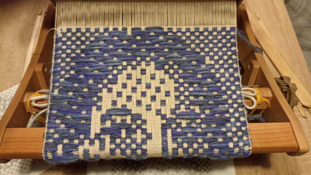 Razem w tym przypadku oznaczało wytkanie na jednym rodzaju osnowy, jedną techniką wspólnego dzieła. Kasia z Podlasia zaproponowała by wytkać nasze autoportrety techniką sejpaku. Beata Palikot-Borowska przygotowała na bazie zdjęć projekty. Tak od pomysłu do wykonania trwało to miesiąc. Sztafeta z krosnem była bardzo precyzyjna, kto kiedy i co tka. Każda z pięciu tkaczek sama dobierała wątek i decydowała o ostatecznym kształcie tkaniny. Jak to się skończyło? Możecie obejrzeć w naszej galerii oraz podczas wystawy w ramach IV Festiwalu Tkackiego SpoTkania organizowanego przez PIK w Białymstoku w 2023r.