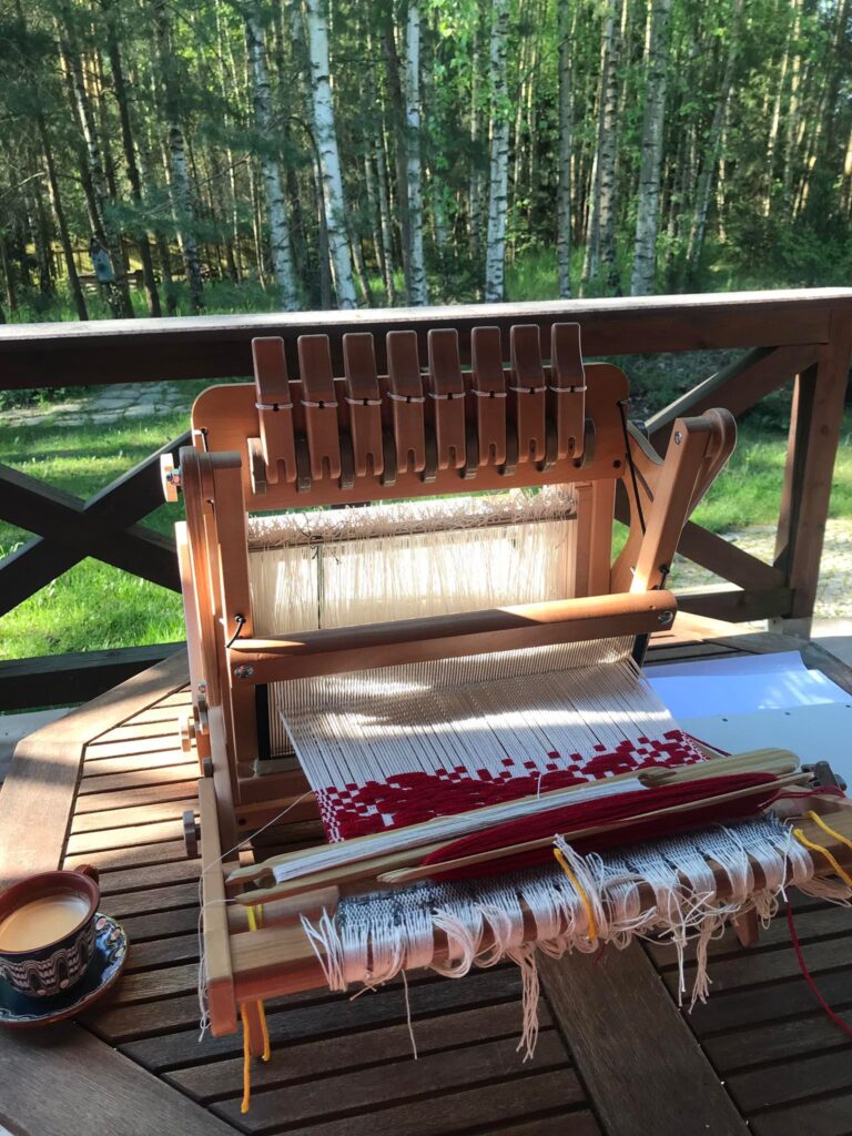 Miłośniczka wykorzystania jak największej liczby nicielnic jaka jest możliwa. Im ich więcej tym weselej i ciekawiej. Jej prace to feria zdecydowanych barw, nie boi się wyrazistej osnowy i wątku. Z ciekawością odczytuje wzory tkanin, tworzy własne. Jej prace publikowane na stronie https://strefatkania.org zawsze uzyskują nietuzinkowe nazwy. Znana specjalistka od konfiguracji tradycyjnych krosien. W trakcie prowadzonych warsztatów sporo czasu spędza oglądając je z różnych stron. W jej głowie pełnej pomysłów zawsze znajdzie się trochę miejsca na coś nowego. Tka kiedy może, wciąż szuka nowych rozwiązań.