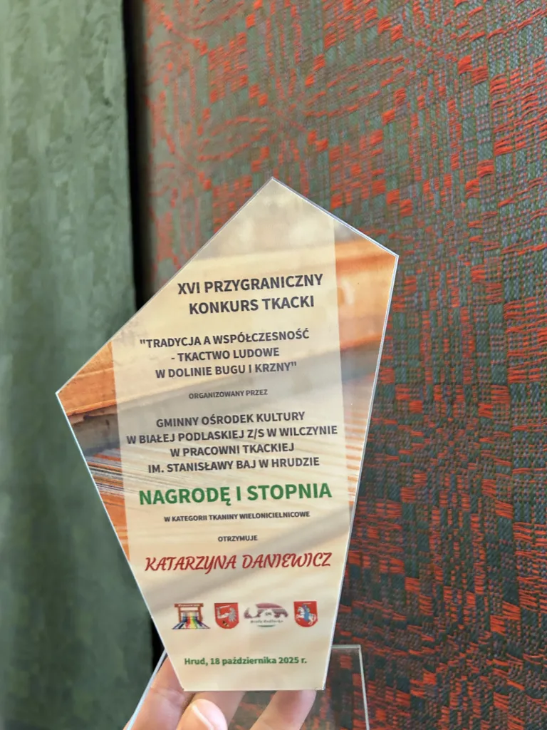 Tkanina otrzymała w roku 2025 Nagrodę I stopnia, w XVI Przygranicznym Konkursie tkackim „Tradycja, a współczesność – tkactwo ludowe w dolinie Bugu i Krzny”
