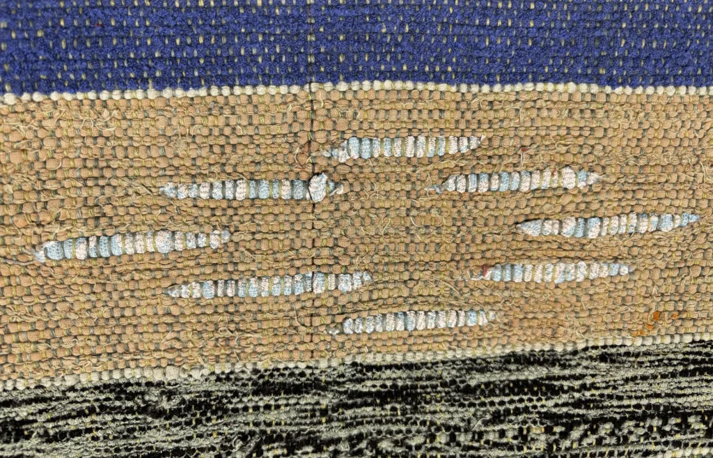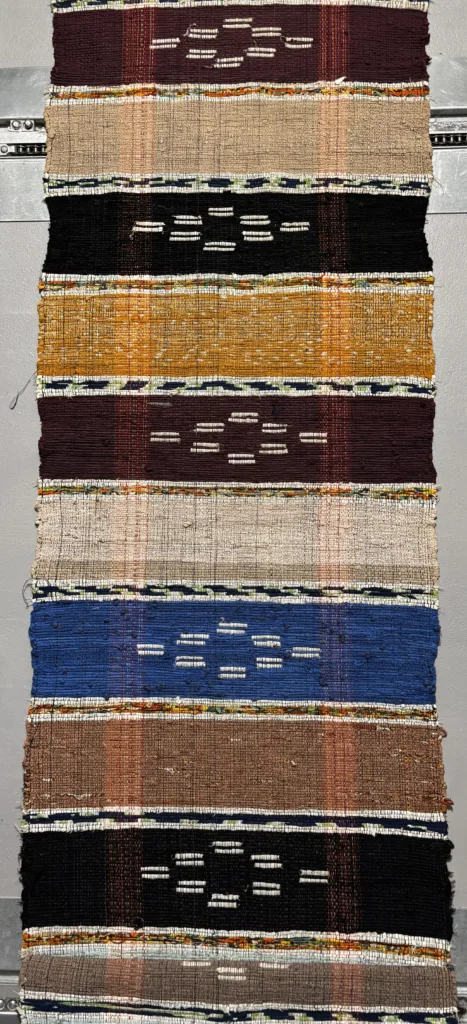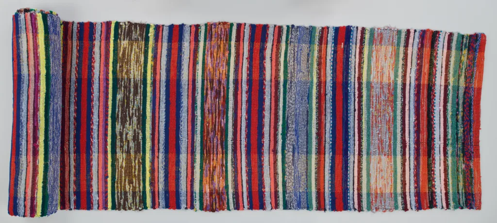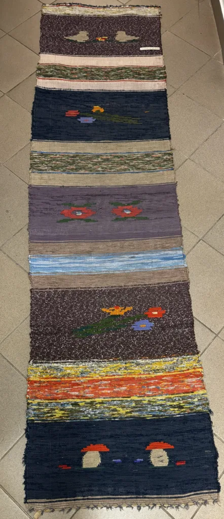 W odwiedzonych przeze mnie muzeach znajdują się chodniki tkane na krosnach. Wiele z nich stanowią tkaniny o układzie pasów równej lub zróżnicowanej długości z rytmicznie powtarzającymi się układami kolorów albo kolorowych wstawek. O wyjątkowości gromadzonych tkanin decyduje także osnowa – jej kolorystyczny układ, gęstość bądź fakt, że była przygotowana z ręcznie przędzionego i barwionego lnu. Chodniki, które widziałam, najczęściej wykonywano splotem płóciennym. Snuto je także „w jodełkę”.