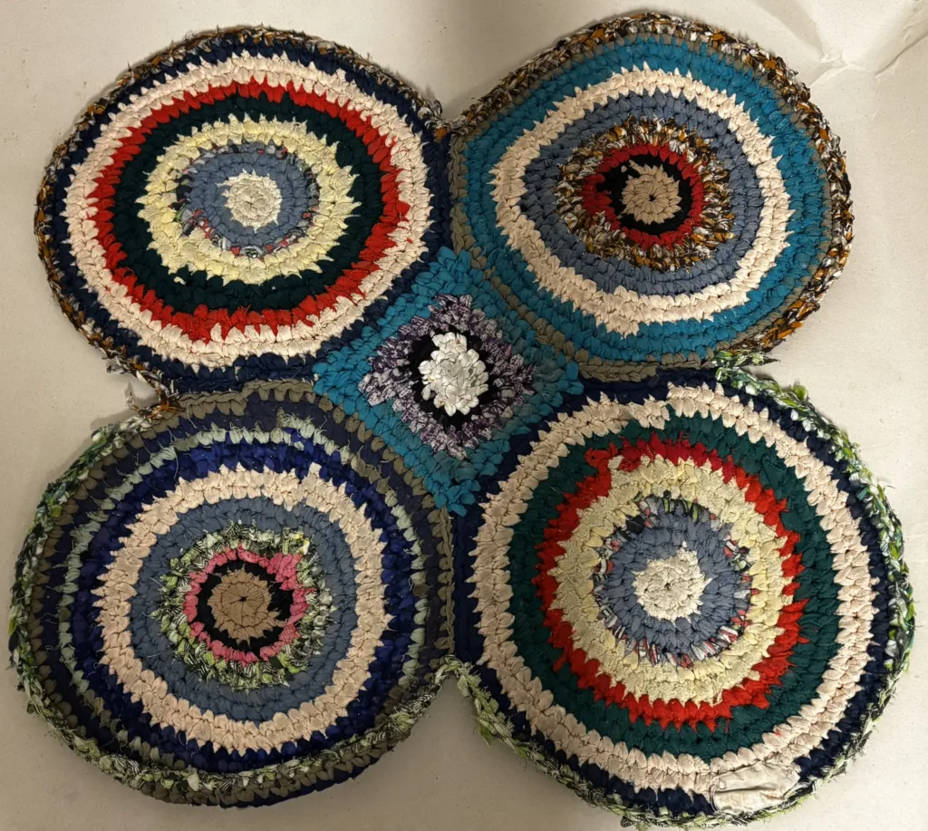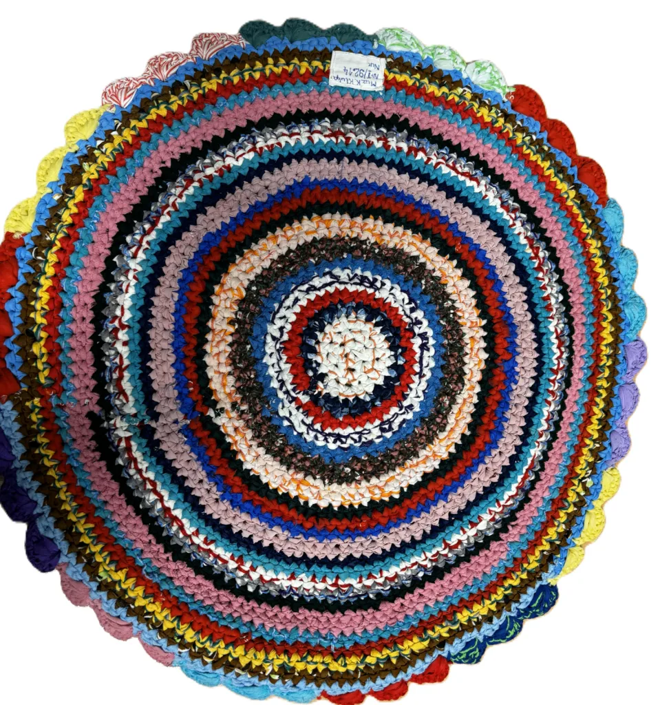W 2025 r. przeprowadziłam kwerendy muzealne w wybranych instytucjach muzealnych województwa podlaskiego, by odnotować w ich zbiorach obecność chodników „szmaciaków”. Ciekawiło mnie, czy dzianiny i tkaniny wykonywane z resztek zużytych materiałów znalazły w nich swoje miejsce, czy „dostąpiły zaszczytu” objęcia ich uwagą, poddania konserwacji i opisania jako elementu dziedzictwa kulturowego. Status chodników „szmaciaków” mierzony rangą wyjątkowości jest bowiem stosunkowo niski. Daleko im do tkanin cenionych ze względu na kunszt wykonania czy szlachetność stosowanej przędzy. Najmniej wyjątkowe są na tym tle chodniki wydziergane na szydełku, najczęściej przybierające postać koła. Ich tworzenie nie wymagało nawet posiadania krosna. Wystarczyło grube szydełko, często wystrugane własnoręcznie z drewna lub zrobione z odpowiednio przyciętego i wygiętego trzonka metalowej łyżki.