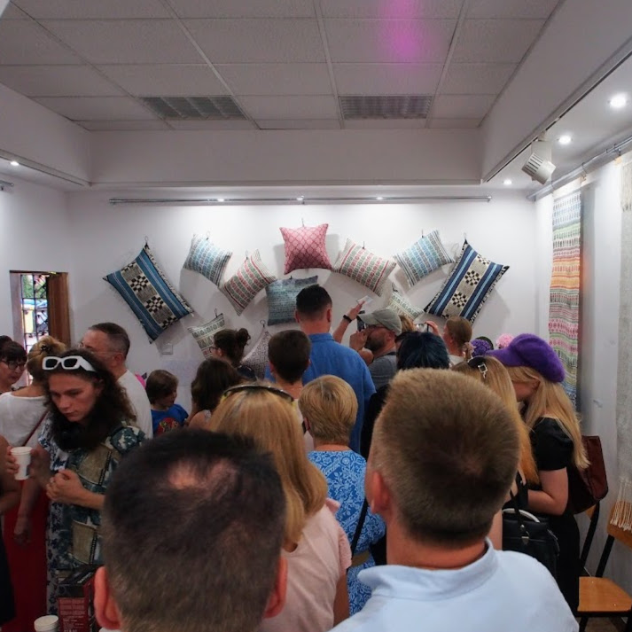 Na wystawie zaprezentowano 19 tkanin płaskich autorstwa 5 artystek i 13 poduszek.