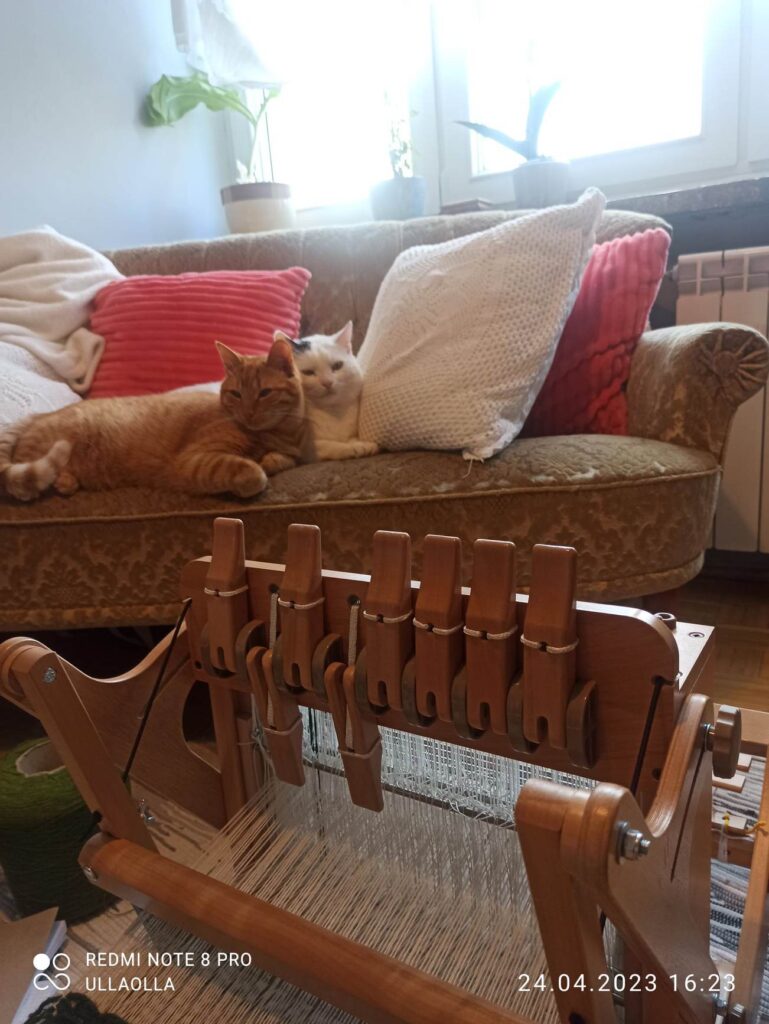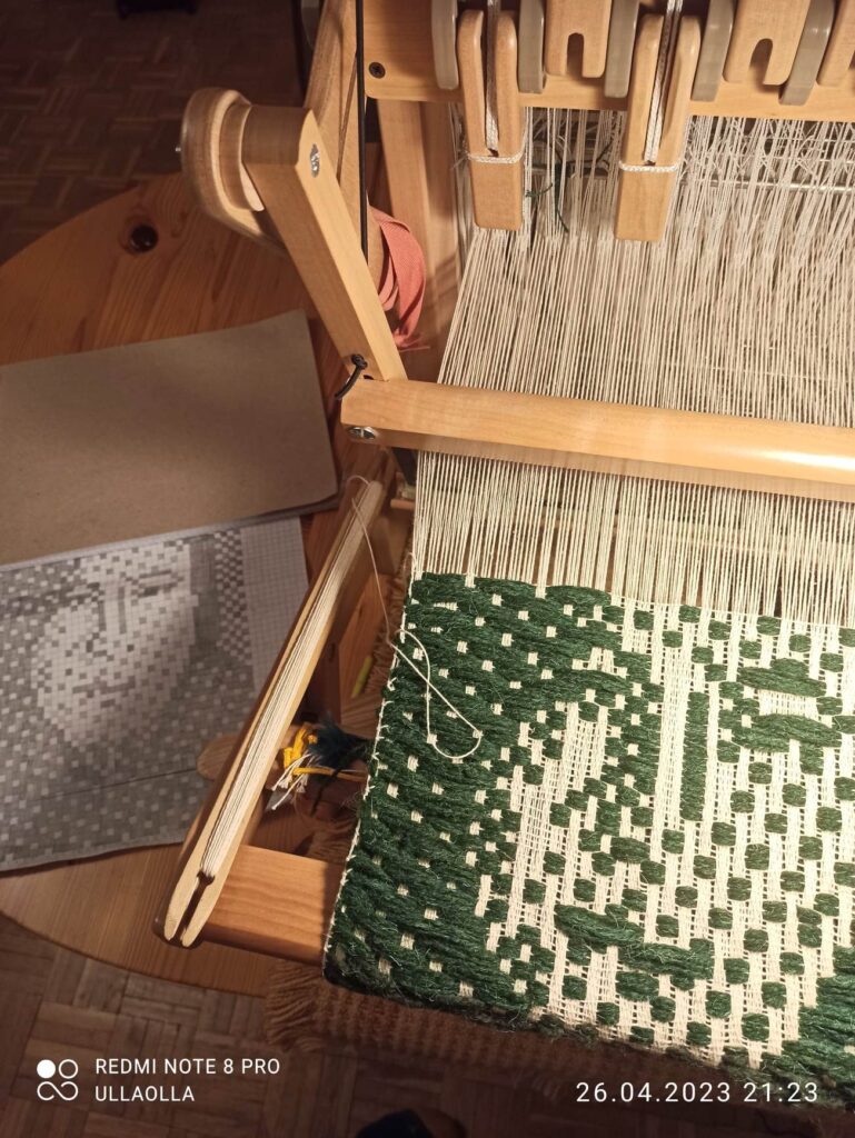 Razem w tym przypadku oznaczało wytkanie na jednym rodzaju osnowy, jedną techniką wspólnego dzieła. Kasia z Podlasia zaproponowała by wytkać nasze autoportrety techniką sejpaku. Beata Palikot-Borowska przygotowała na bazie zdjęć projekty. Tak od pomysłu do wykonania trwało to miesiąc. Sztafeta z krosnem była bardzo precyzyjna, kto kiedy i co tka. Każda z pięciu tkaczek sama dobierała wątek i decydowała o ostatecznym kształcie tkaniny. Jak to się skończyło? Możecie obejrzeć w naszej galerii oraz podczas wystawy w ramach IV Festiwalu Tkackiego SpoTkania organizowanego przez PIK w Białymstoku w 2023r.