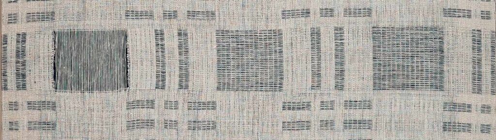 wymiary wytkanej tkaniny: szer.69×89,5 cm, umieszczona na drewnianej ramie – do wstępnej ekspozycji